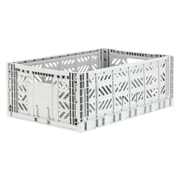 Large Aykasa folding storage box Material: 100% recyclable plastic Measurements : outside 60 x 40 x 22 cm / inside 57 x 37 x 21 cm / folded 60 x 40 x 3,6 cm (takes only 16% of its original space!) Volume : 44 liters. Loading capacity : 22 kg. Weight : 1800 g. Details : Easy to use foldable and stackable Complies with FDA, BGA and all food standards