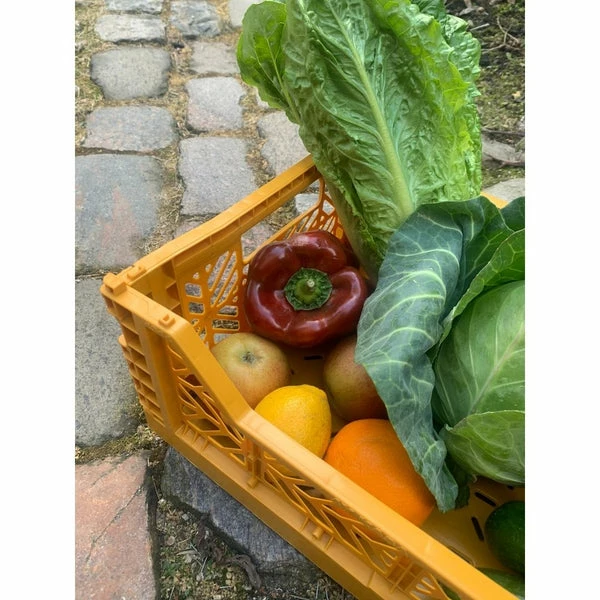 Aykasa – Medium Folding Storage Crate: Mustard. You can make your daily life easier and more practical with this folding crate, designed for home organising and excellent toy storage! When you are not actively using the folding crate, you can fold away and save space. These foldable storage crates are very durable under high load or weight. You can use at home, the office, outdoors, in the car, warehouse – anywhere you can imagine! Eco-friendly: made with 100% recyclable materials Easy to use Foldable and stackable All panes removable and washable Exterior 40 x 30 x 14,5 cm Interior 37,6 x 27,6 x 14 cm Folded 40 x 30 x 2,7 cm (it takes up only 20% of its original space!) Capacity 15 liters Loading Capacity 8 kg ISO 9001-2008 / ISO 14001 / OHSAS 18001 / ISO 22000 Complies with FDA, BGA and all food standards Made in Turkey See the entire collection here.
