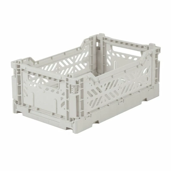 Aykasa – Small Folding Storage Crate: Light Grey. You can make your daily life easier and more practical with this folding crate, designed for home organising and excellent toy storage! When you are not actively using the folding crate, you can fold away and save space. Eco-friendly: made with 100% recyclable materials Easy to use Foldable and stackable All panes removable and washable Exterior 27 x 17 x 10,5 cm Interior 24,6 x 15,7 x 10,4 cm Folded 27 x 17 x 3 cm (it takes up only 20% of its original space!) Capacity 4 litres Loading Capacity 2,5 kg ISO 9001-2008 / ISO 14001 / OHSAS 18001 / ISO 22000 Complies with FDA, BGA and all food standards Made in Turkey See the entire collection here.